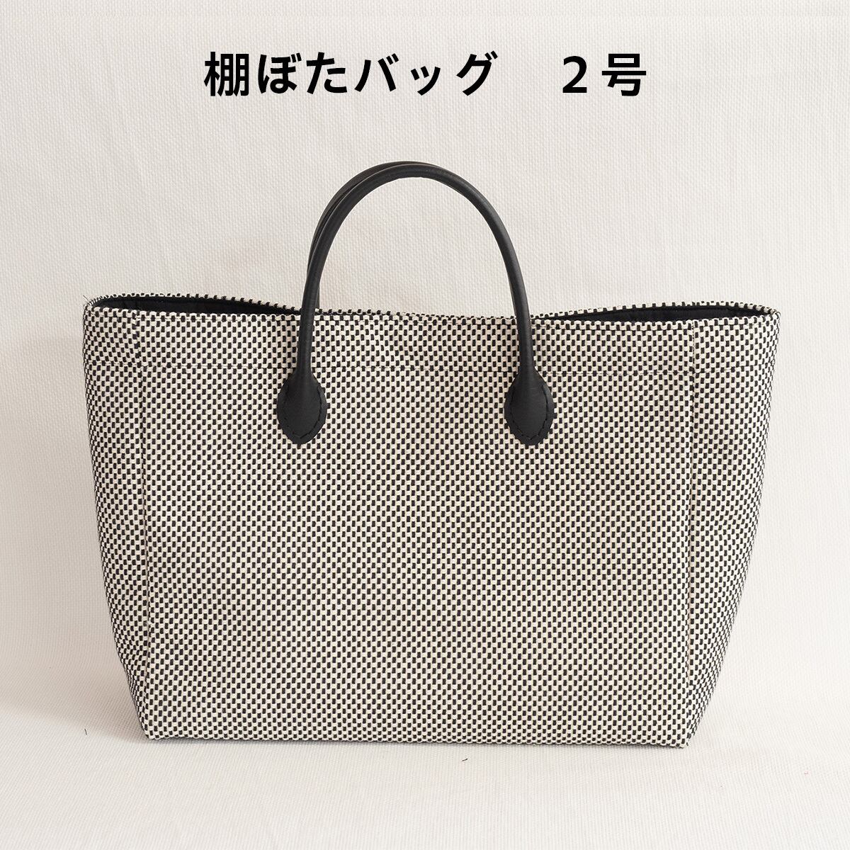 革の持ち手がエレガントなバッグです。お客様のオーダ品から生まれたシリーズ「たなぼた」は、お客様への感謝の気持をブランドネームにしました。